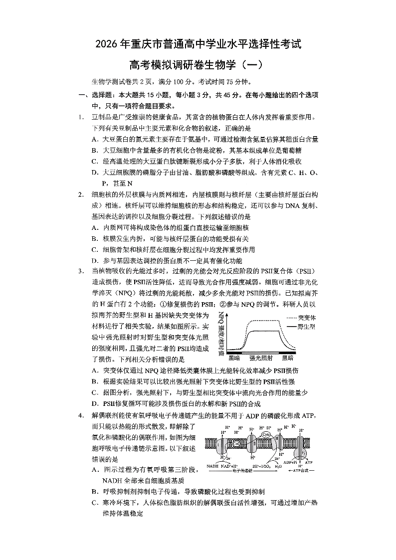 2026年重庆市普通高中学业水平选择性考试高考模拟调研卷(一)生物试题(含答案).pdf