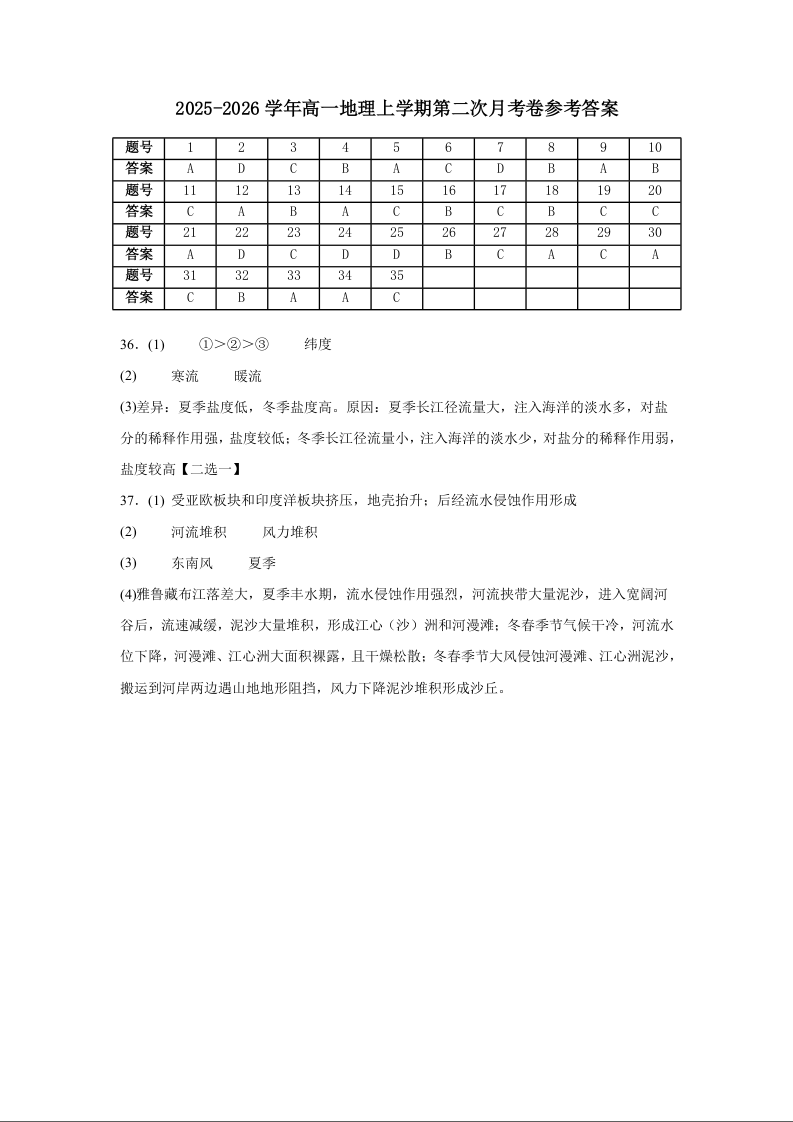 河南省实验中学2025-2026学年高一上学期第二次月考 地理答案.docx