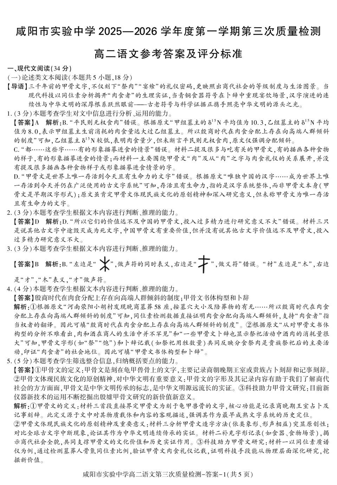 咸阳市实验中学2025-2026学年高二上学期第三次质量检测 语文答案.pdf