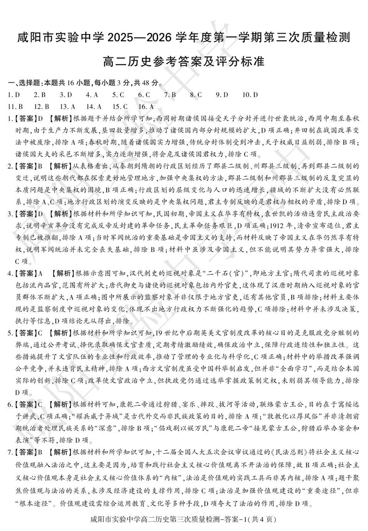 咸阳市实验中学2025-2026学年高二上学期第三次质量检测 历史答案.pdf