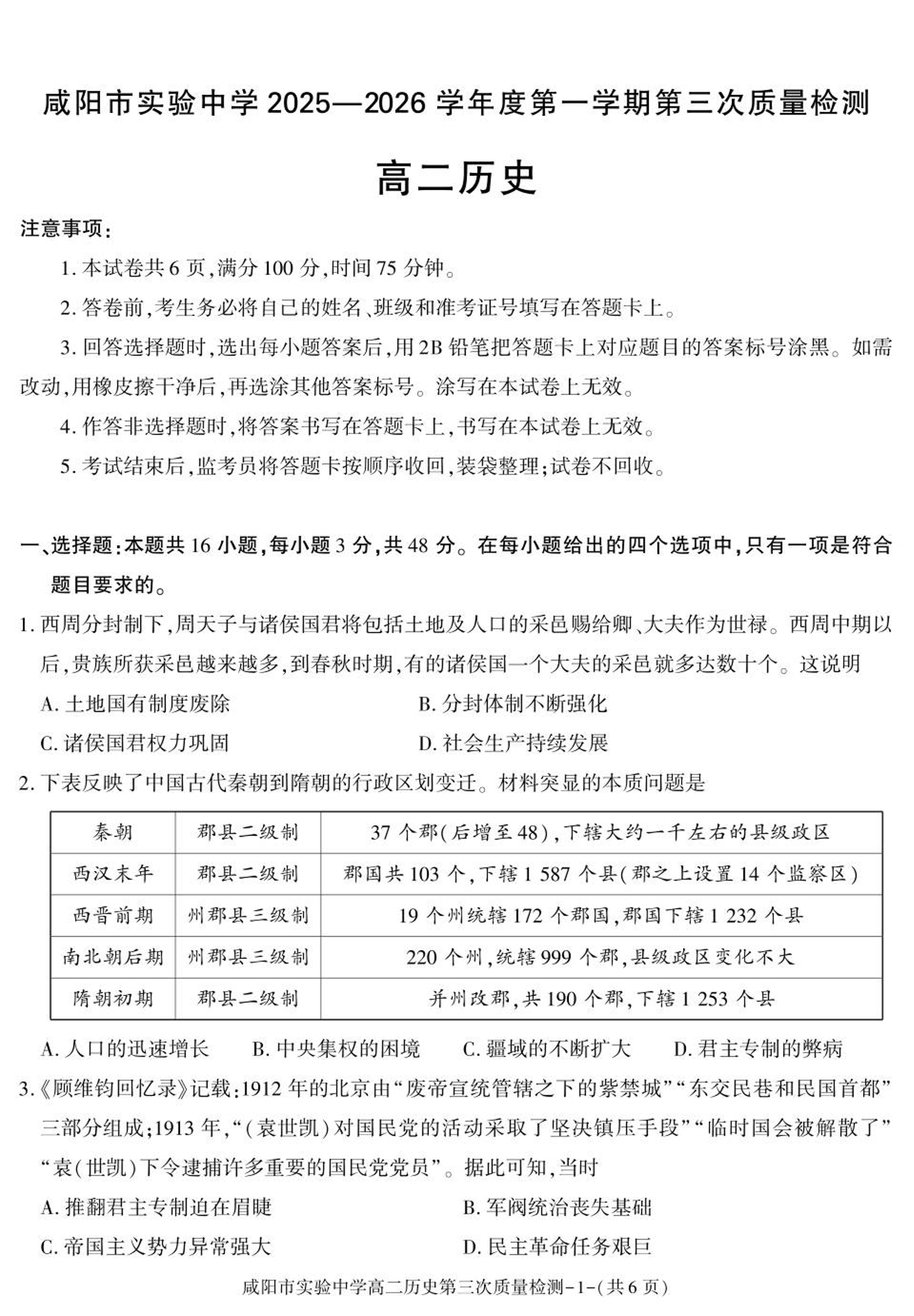 咸阳市实验中学2025-2026学年高二上学期第三次质量检测 历史.pdf