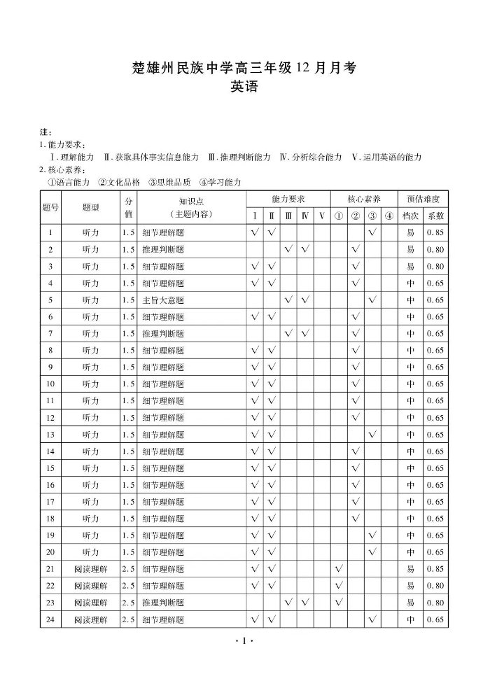 楚雄州民族中学高三年级12月月考 英语答案.pdf