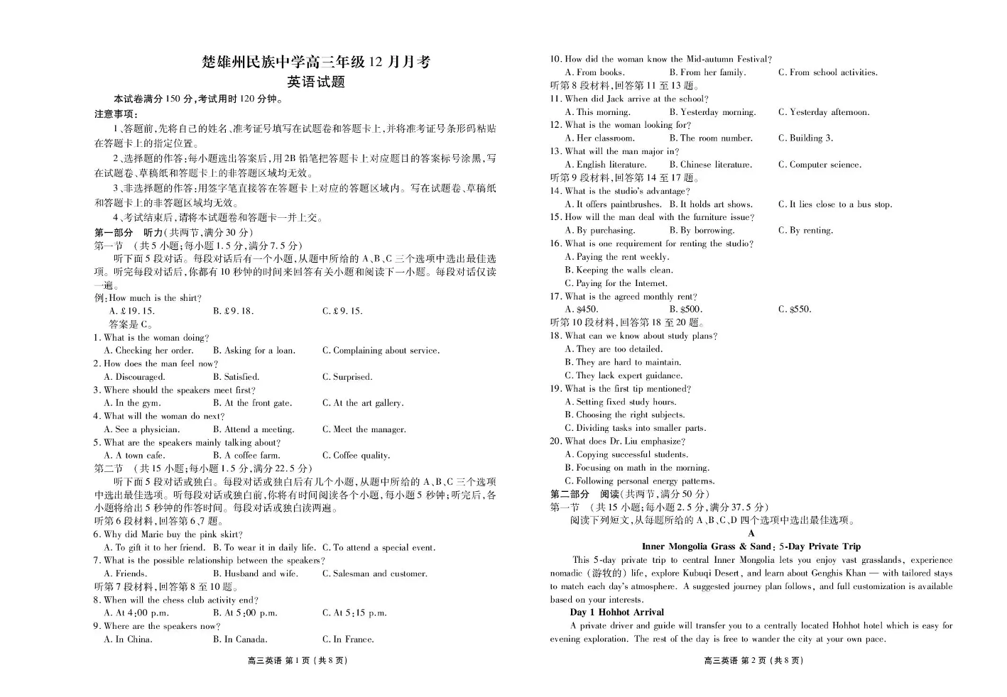 楚雄州民族中学高三年级12月月考 英语.pdf