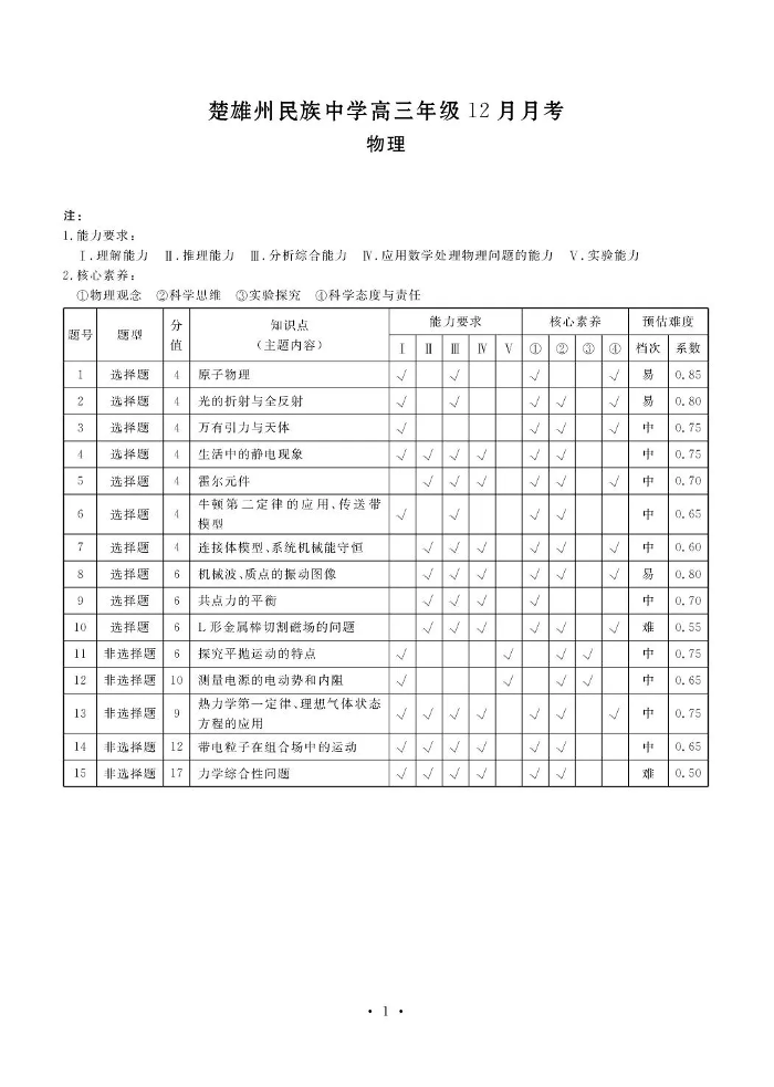 楚雄州民族中学高三年级12月月考 物理答案.pdf