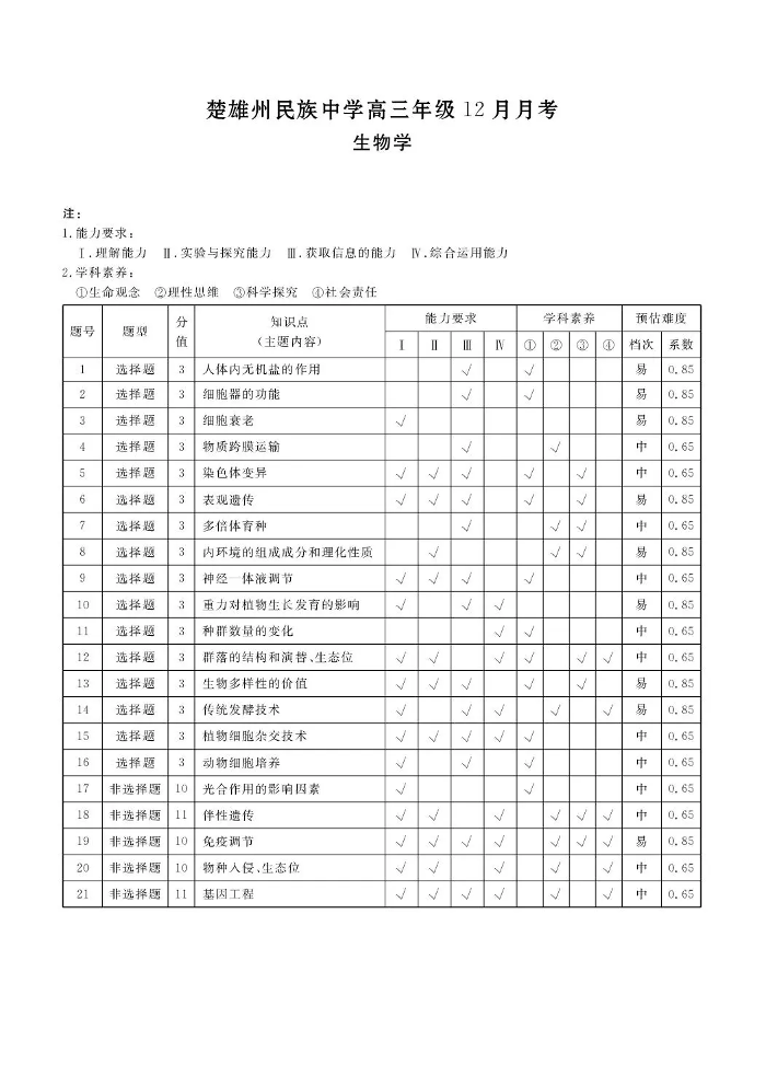 楚雄州民族中学高三年级12月月考 生物答案.pdf