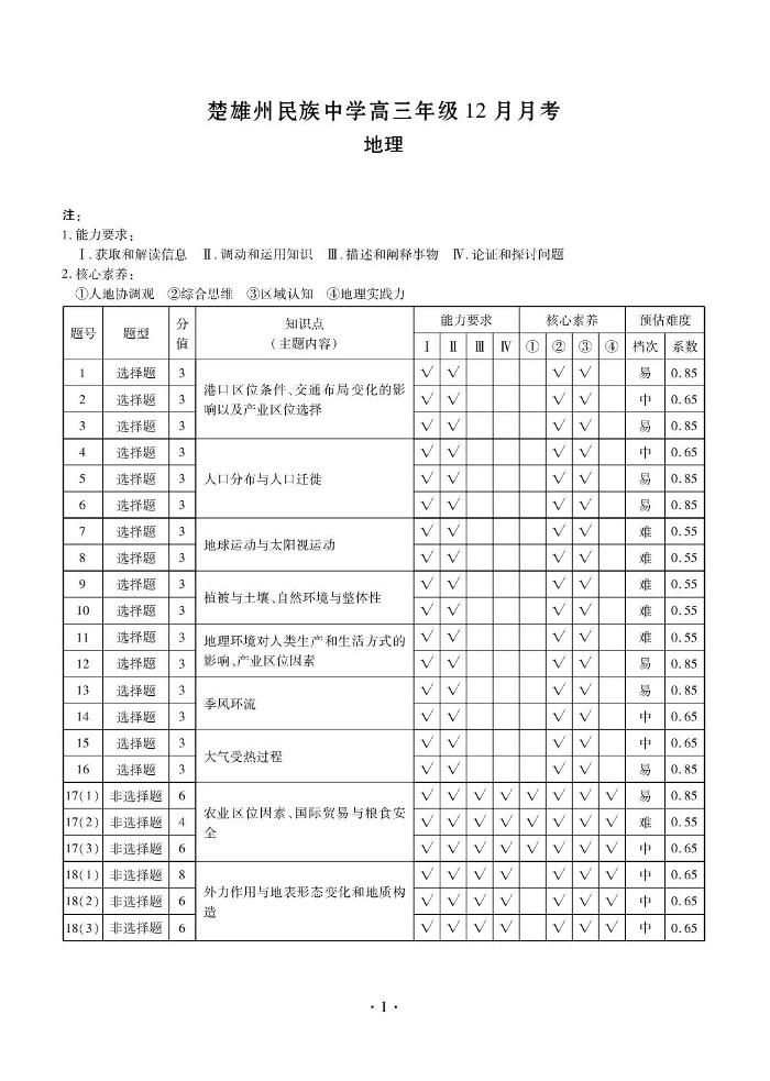 楚雄州民族中学高三年级12月月考 地理答案.pdf