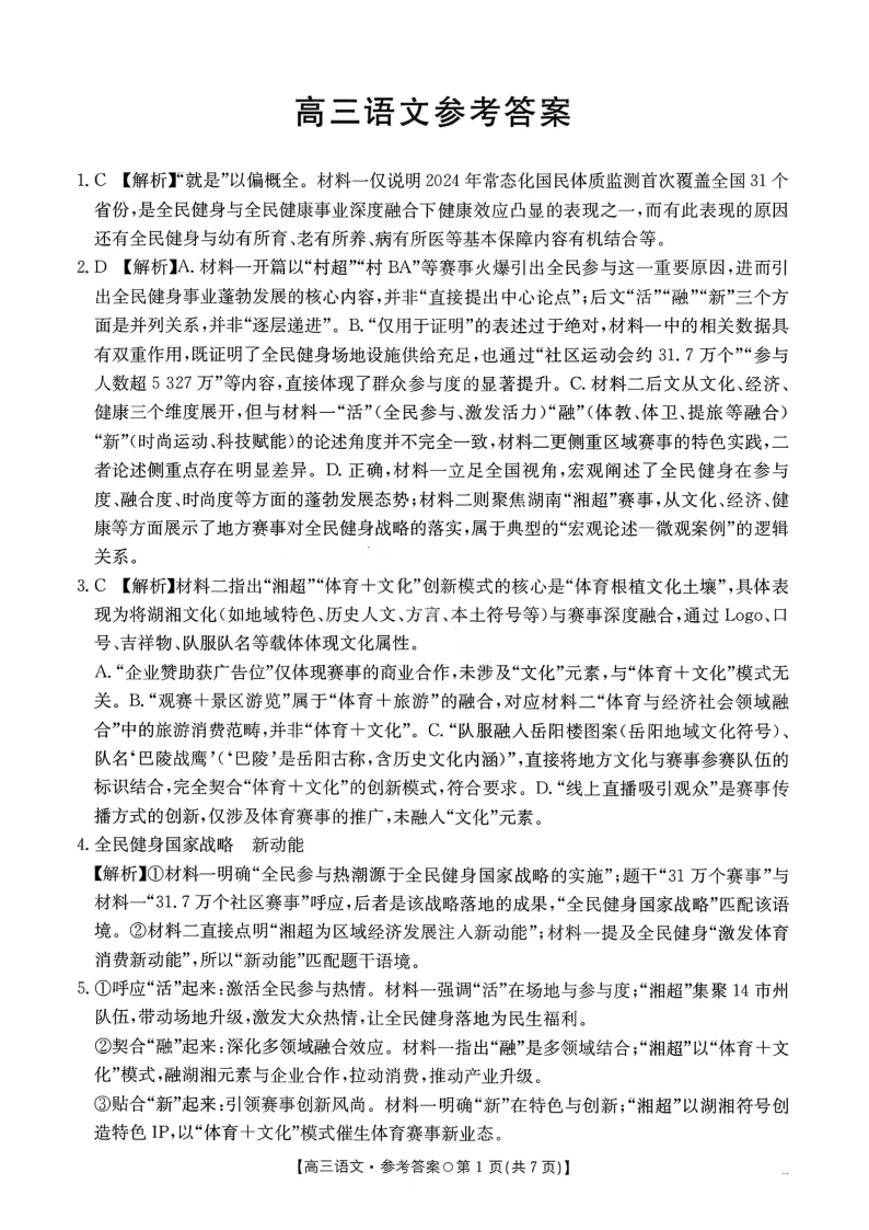 湖南省2026届高三上学期1月联考 语文答案.pdf