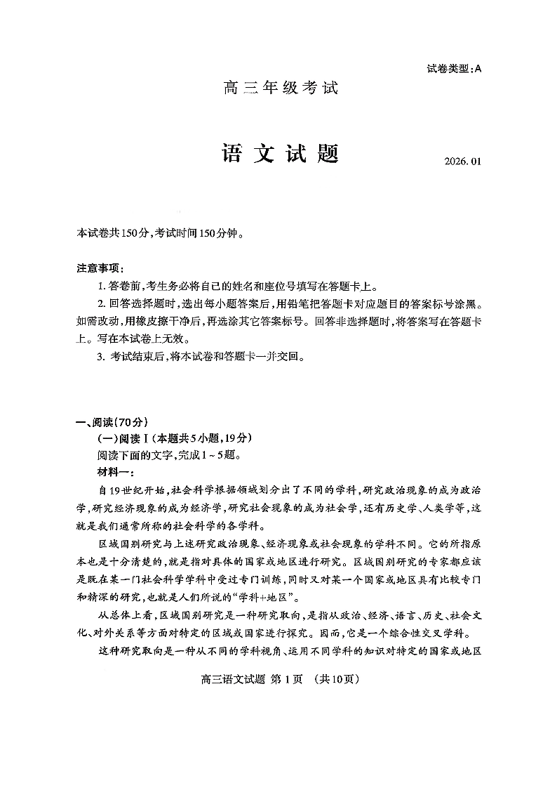 泰安市2026届高三上学期1月期末考试 语文试题(含答案).pdf