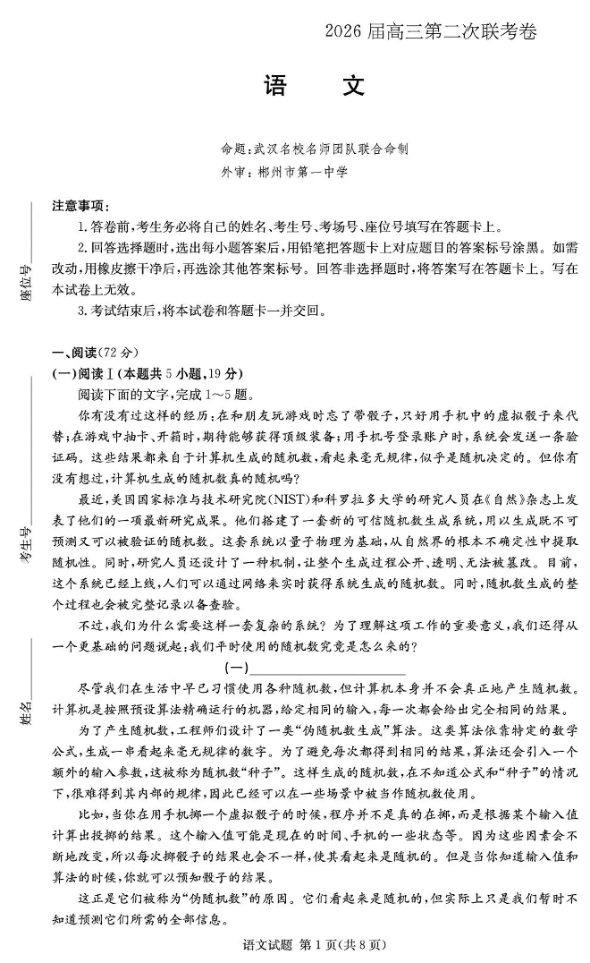 湖南佩佩教育战略合作学校2026届高三第二次联考卷 语文.pdf