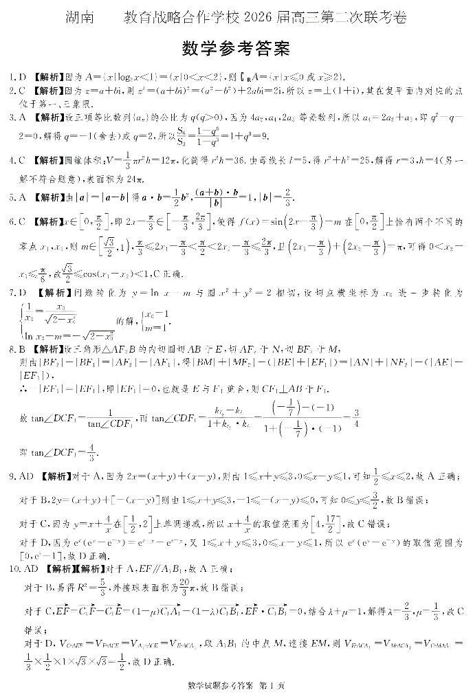 湖南佩佩教育战略合作学校2026届高三第二次联考卷 数学答案.pdf