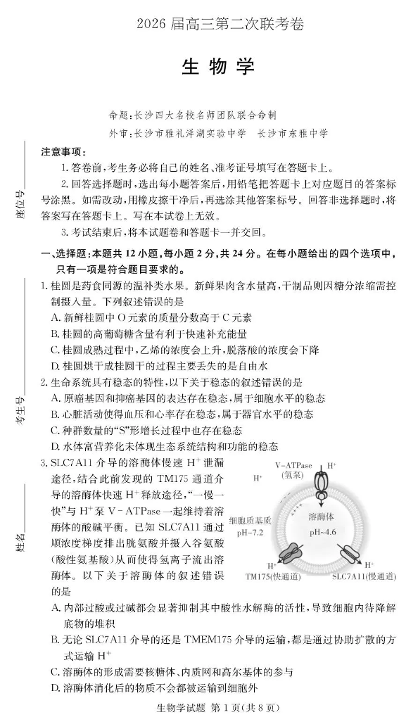 湖南佩佩教育战略合作学校2026届高三第二次联考卷 生物.pdf