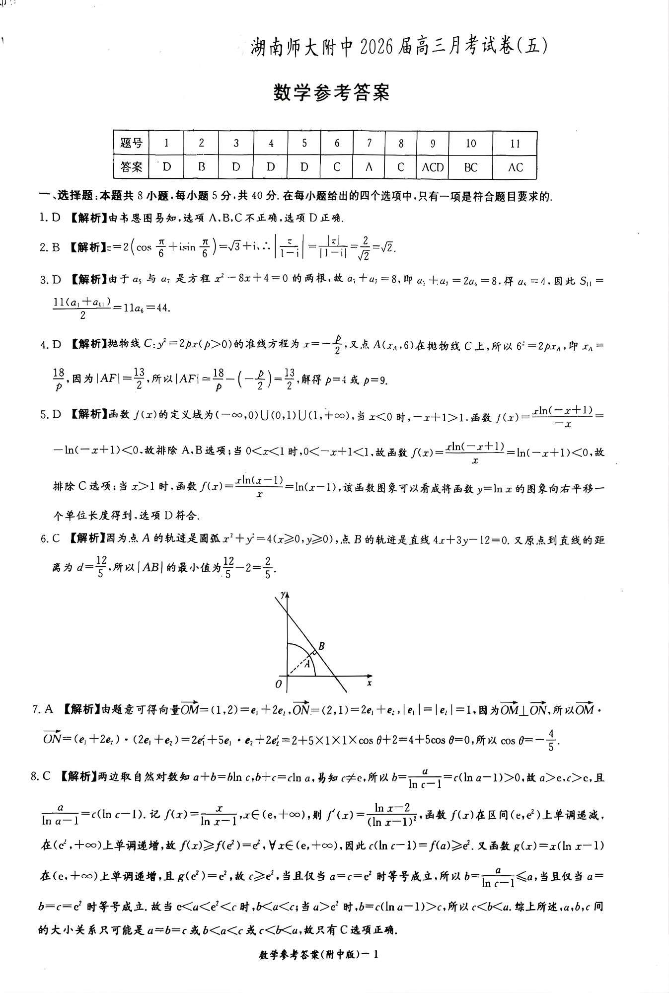 湖南师大附中2026届高三月考试卷(五)数学答案.pdf