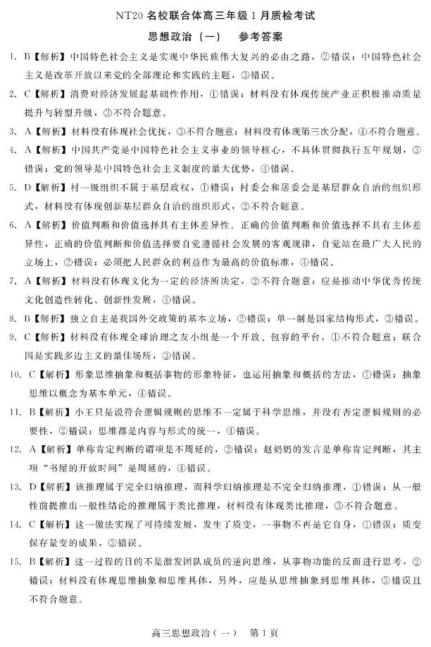 NT20名校联合体高三年级1月质检考试 政治答案.pdf