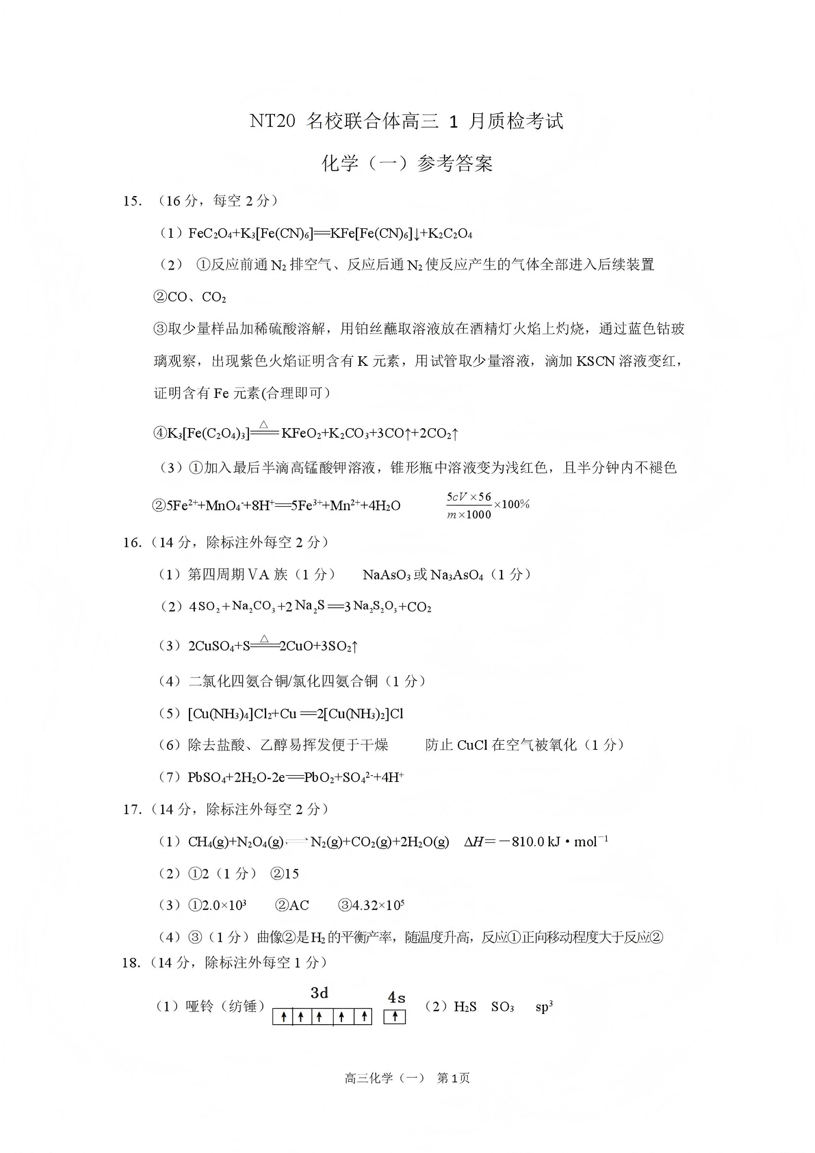 NT20名校联合体高三年级1月质检考试 化学评分细则.pdf