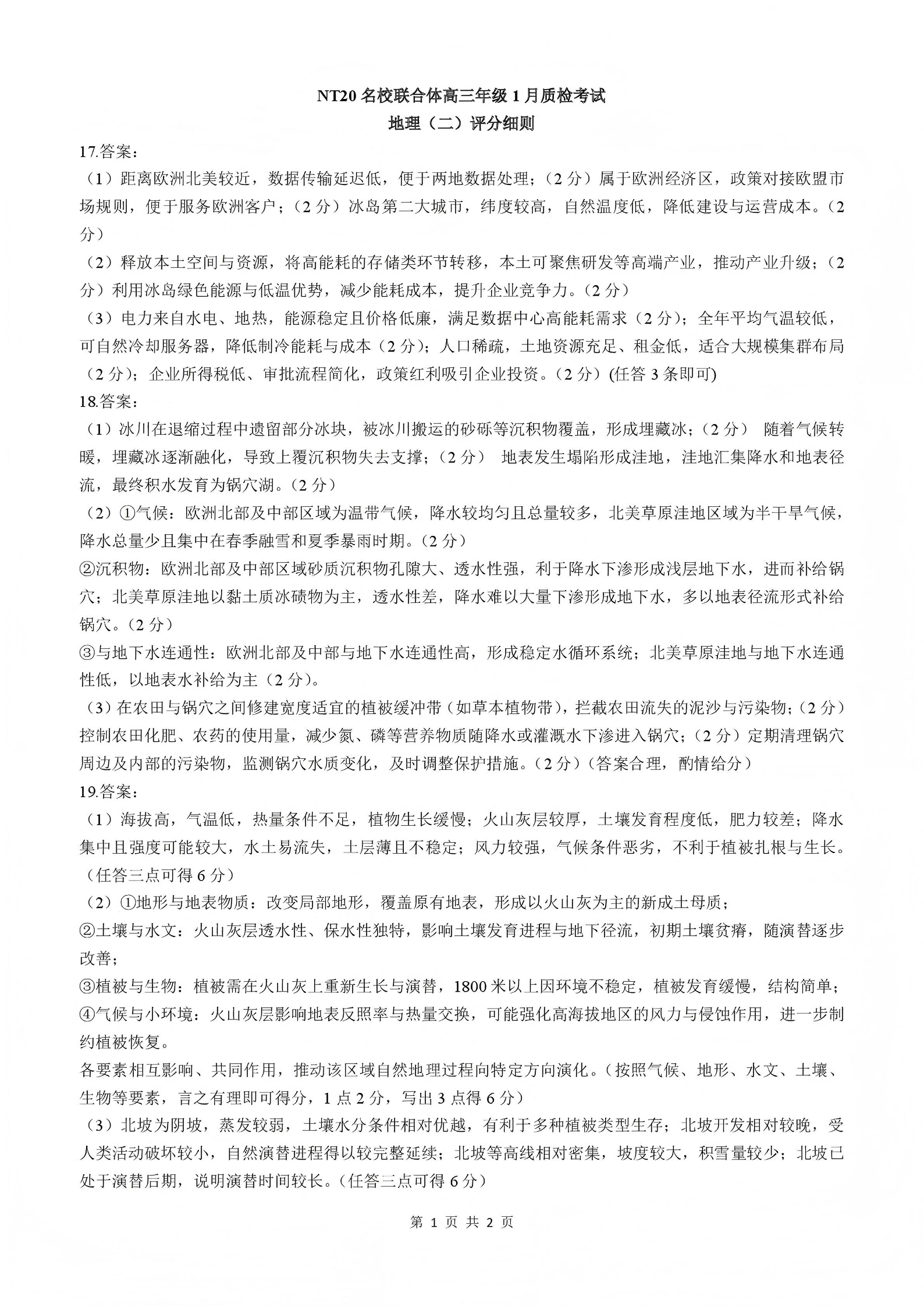 NT20名校联合体高三年级1月质检考试 地理评分细则.pdf