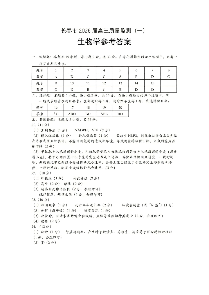 长春市2026届高三质量监测(一)生物答案.pdf