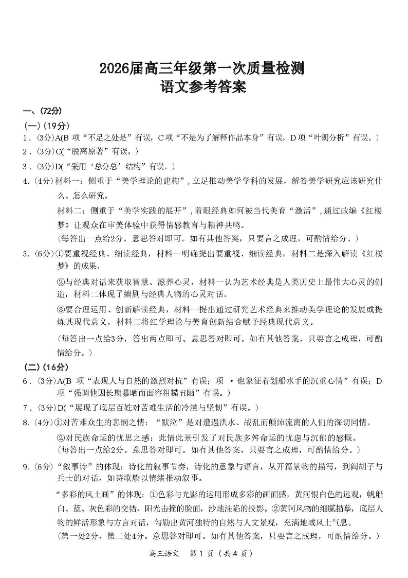 开封市2026届高三年级第一次质量检测 语文答案.pdf