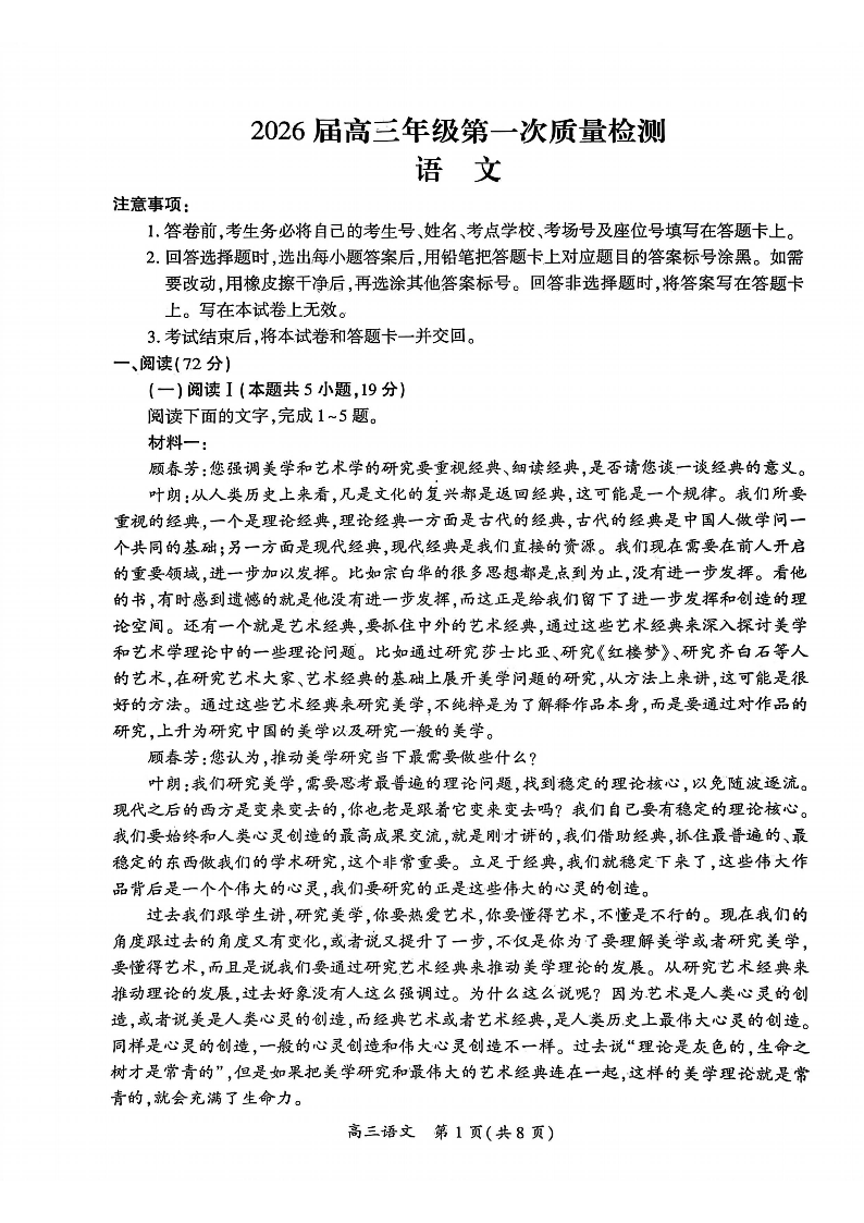 开封市2026届高三年级第一次质量检测 语文.pdf