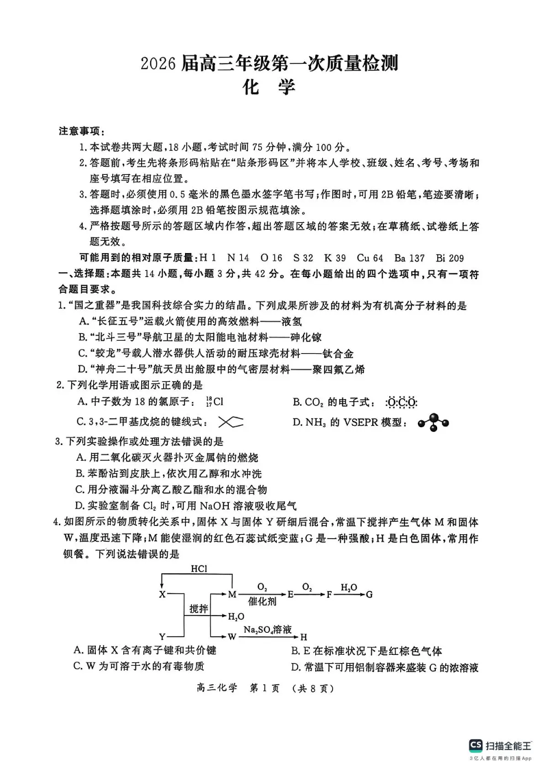开封市2026届高三年级第一次质量检测 化学.pdf