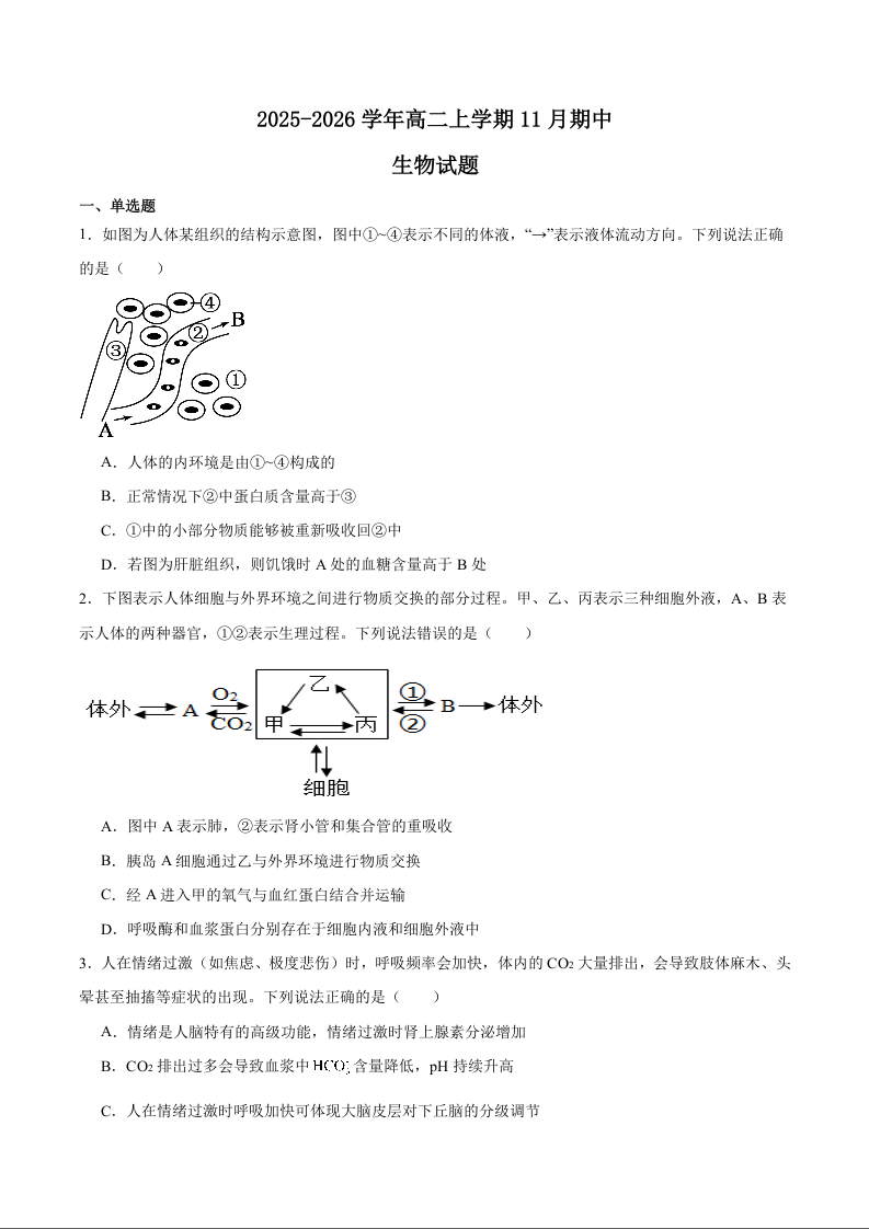 山东省德州市2025-2026学年高二上学期期中考试 生物试题(含答案).docx