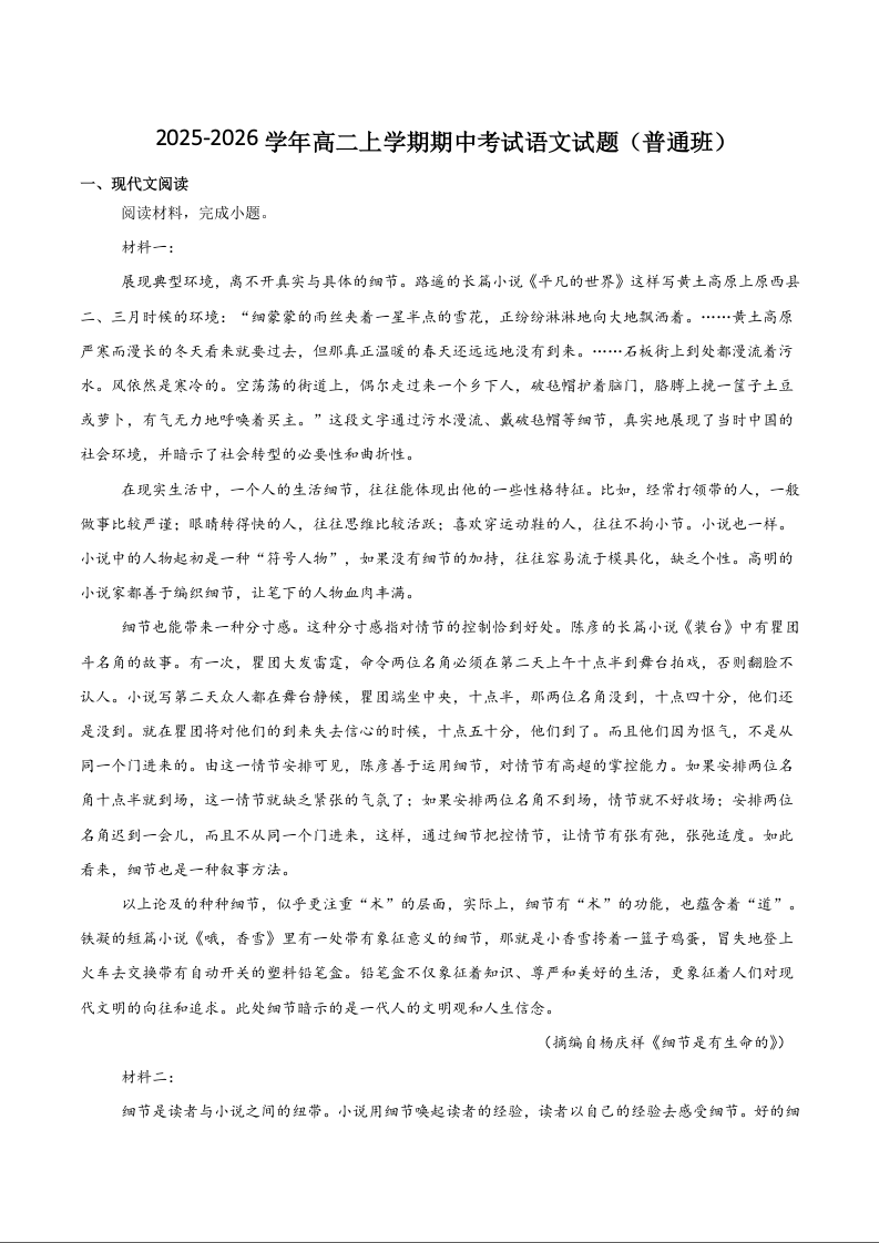 江西省上饶市2025-2026学年高二上学期期中考试 语文试题(含答案).docx