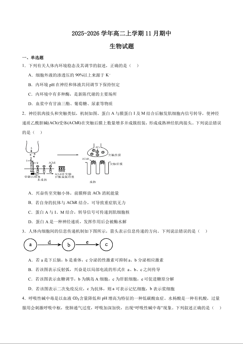 江苏省常州高级中学2025-2026学年高二上学期期中考试 生物试题(含答案).docx