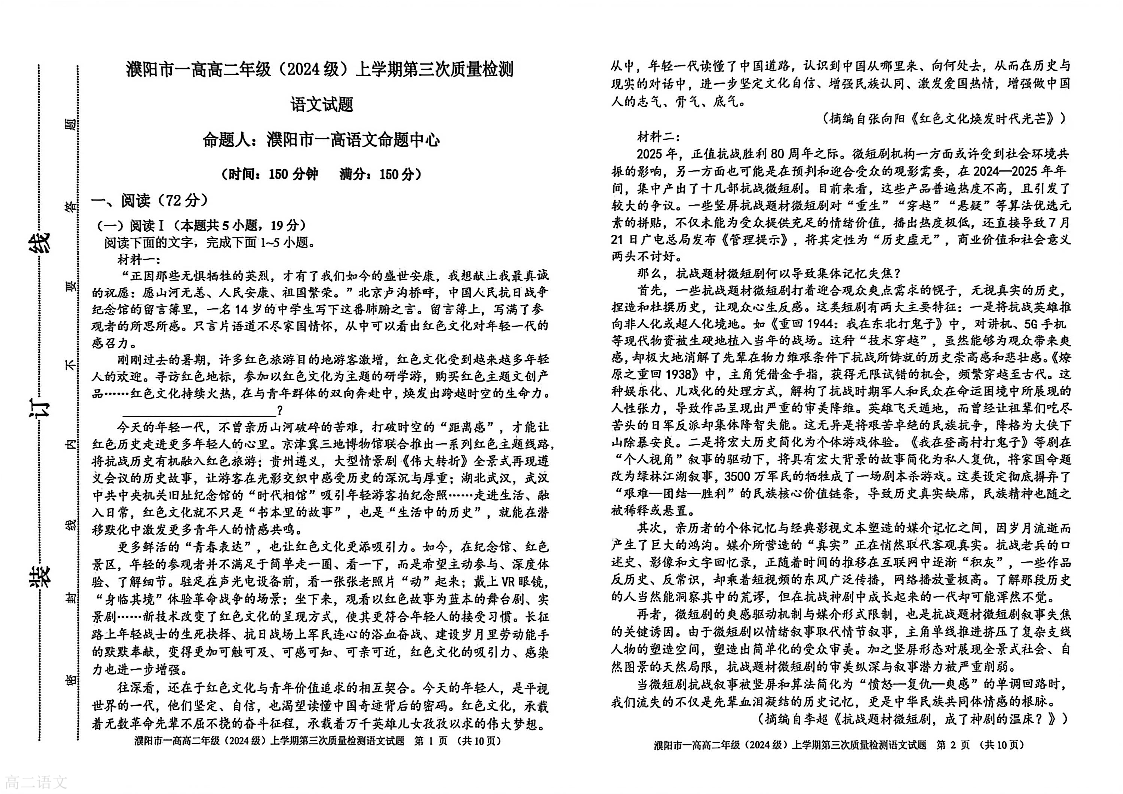 濮阳市一高2024级高二上学期第三次质量检测 语文.pdf