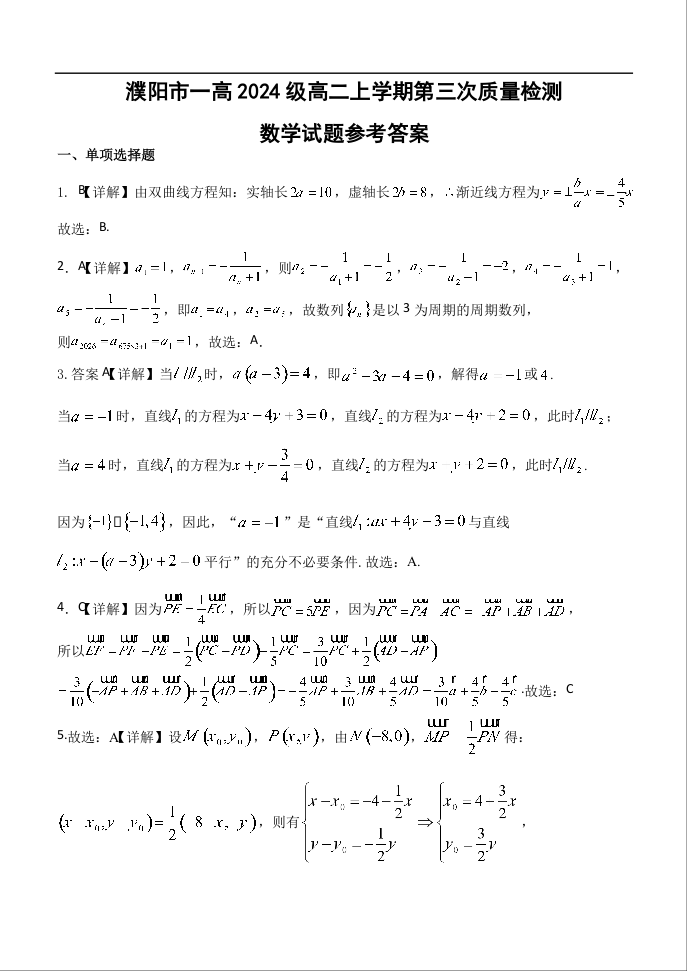 濮阳市一高2024级高二上学期第三次质量检测 数学答案.docx