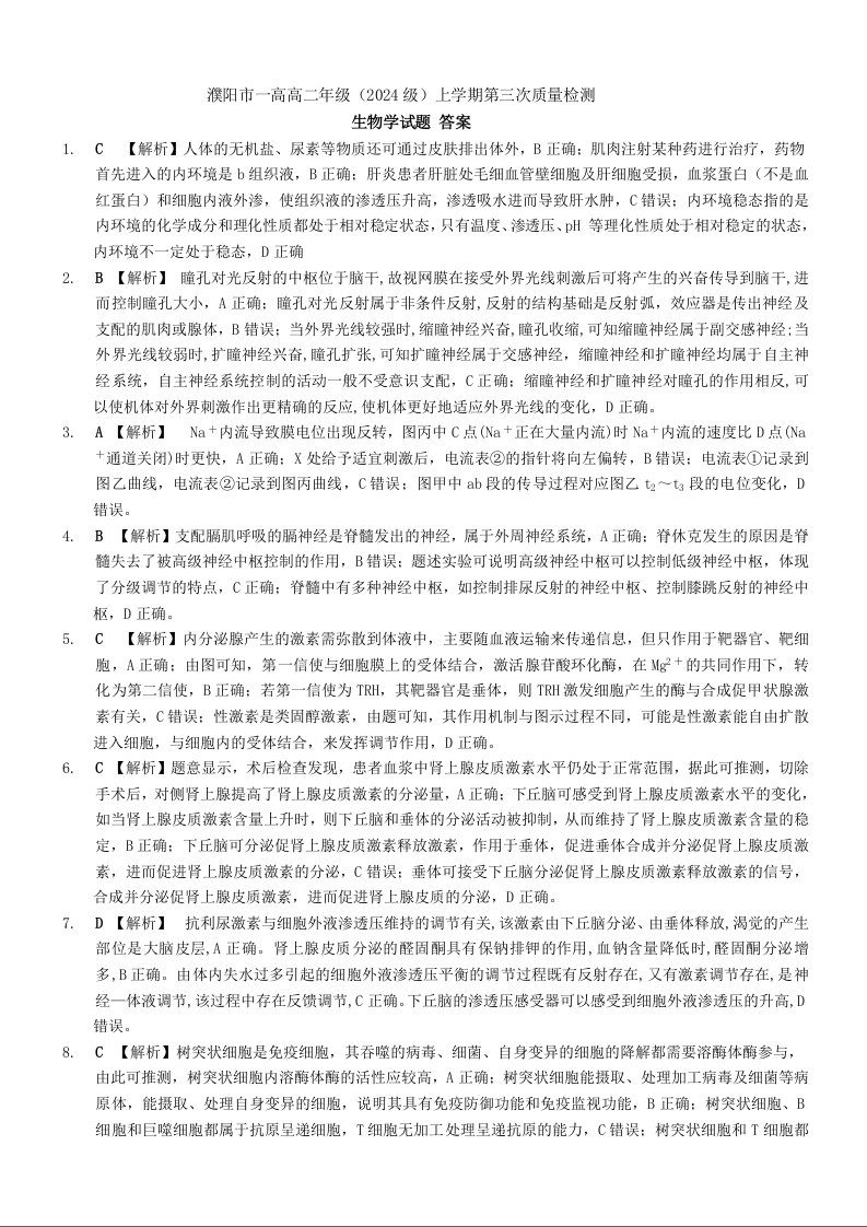 濮阳市一高2024级高二上学期第三次质量检测 生物答案.docx