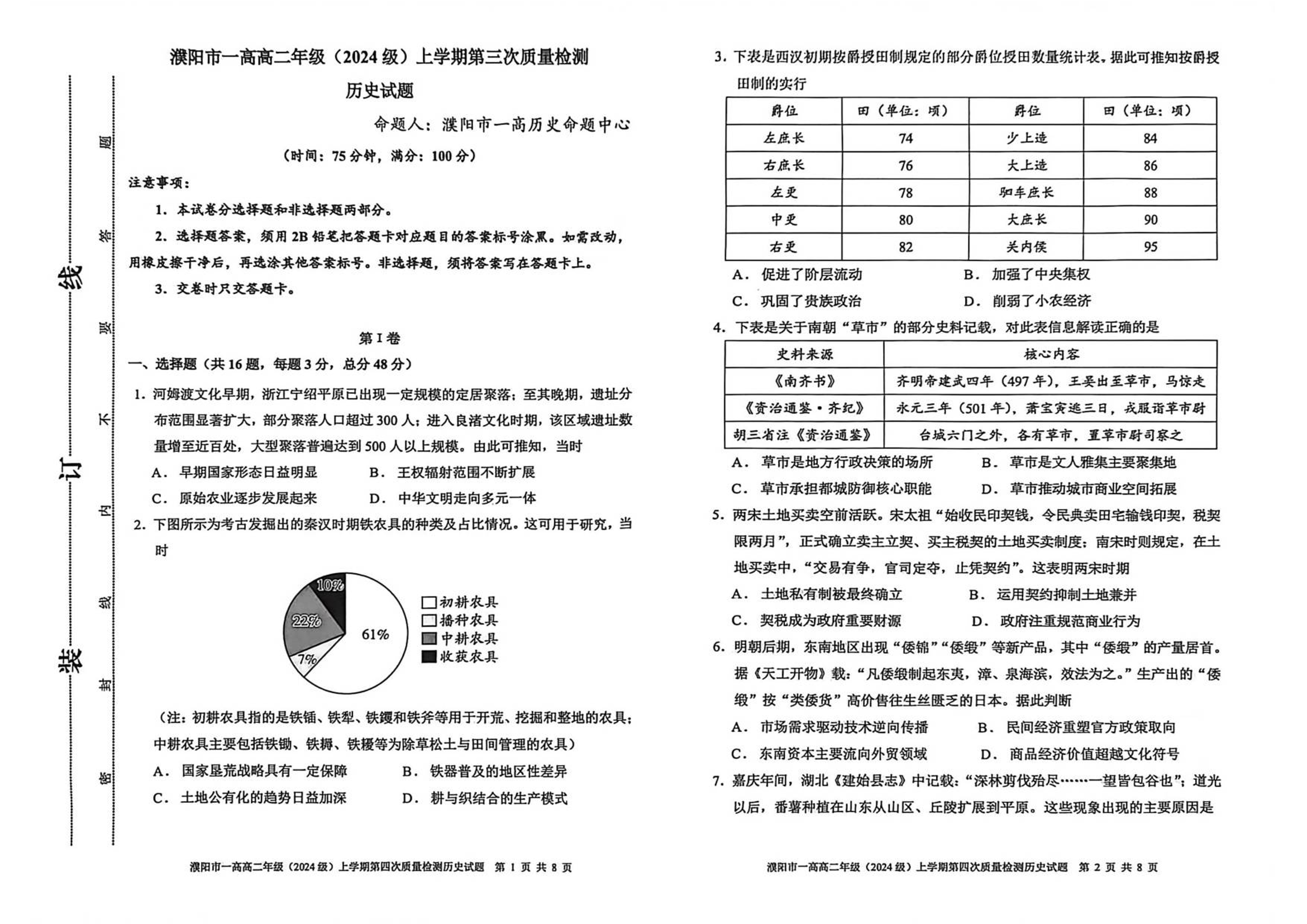 濮阳市一高2024级高二上学期第三次质量检测 历史.pdf
