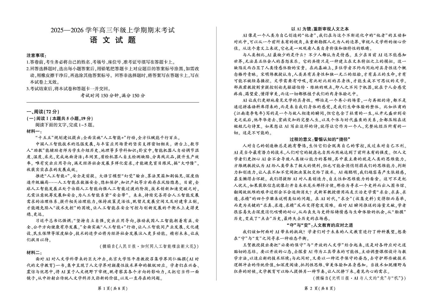 百师联盟2025—2026学年高三年级上学期期末考试 语文.pdf