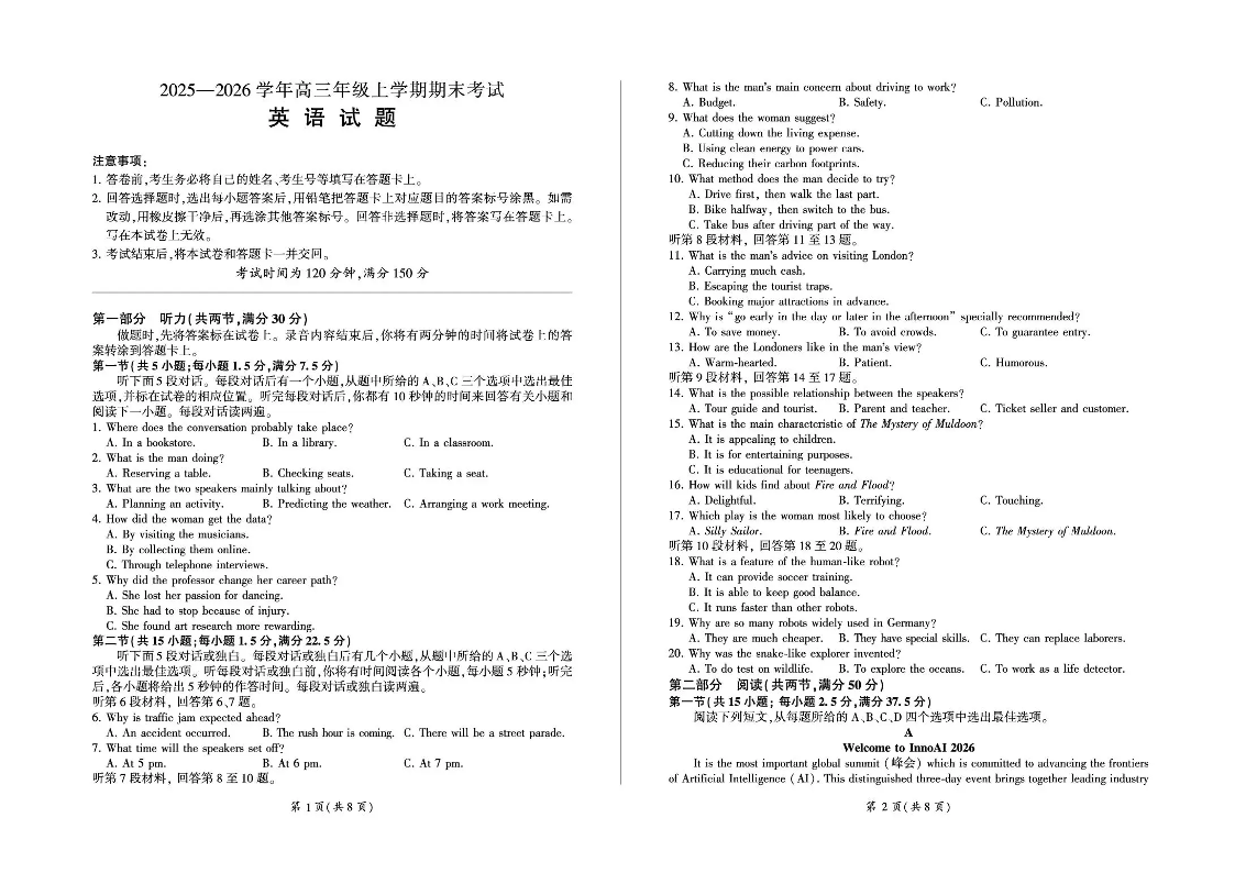 百师联盟2025—2026学年高三年级上学期期末考试 英语.pdf