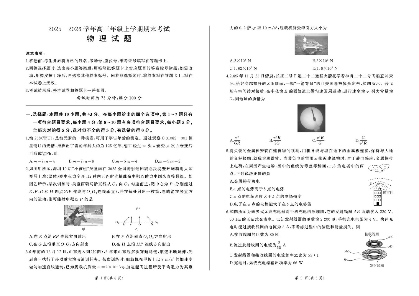 百师联盟2025—2026学年高三年级上学期期末考试 物理.pdf