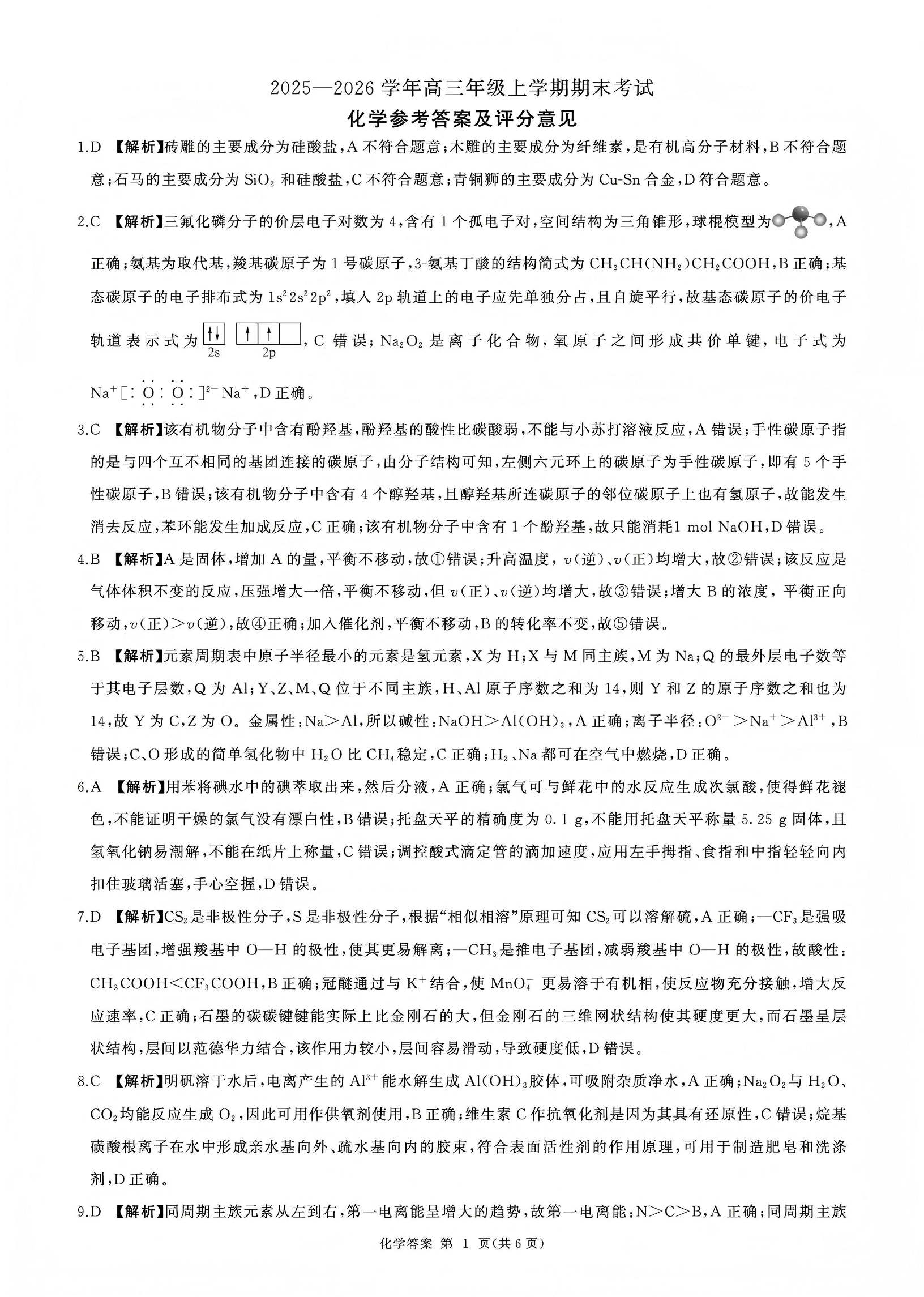 百师联盟2025—2026学年高三年级上学期期末考试 化学答案.pdf