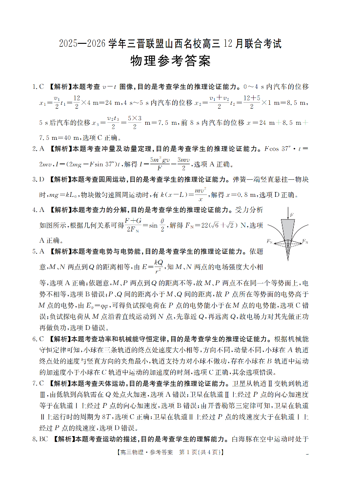 山西省名校三晋联盟2025-2026学年高三上学期12月联合考试 物理答案.pdf
