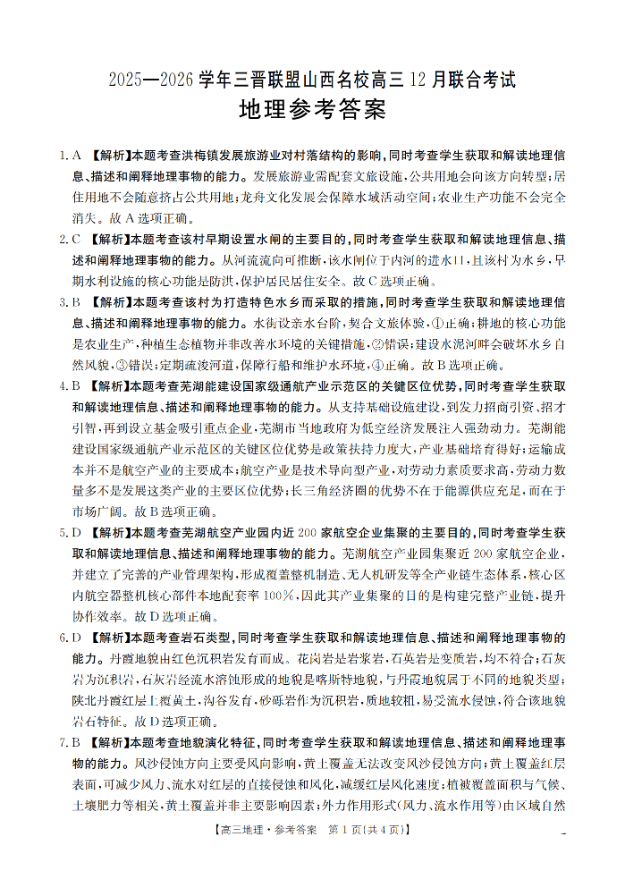 山西省名校三晋联盟2025-2026学年高三上学期12月联合考试 地理答案.pdf