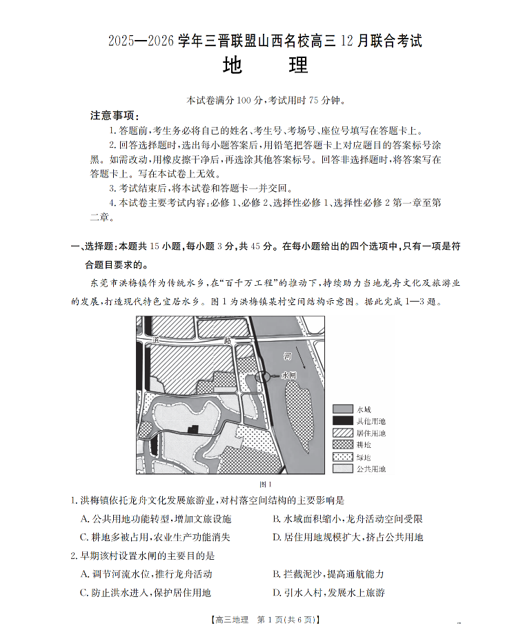 山西省名校三晋联盟2025-2026学年高三上学期12月联合考试 地理.pdf