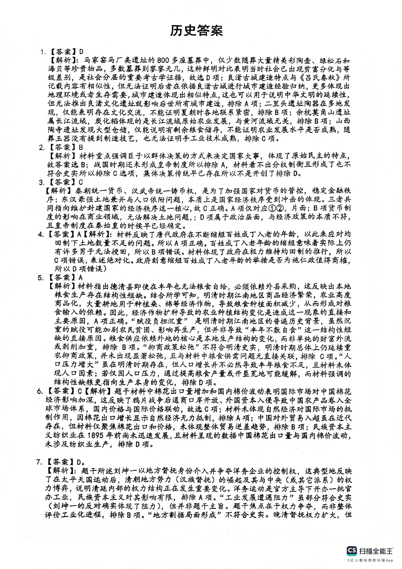 绵阳南山中学高2023级高三第五次教学质量检测 历史答案.pdf