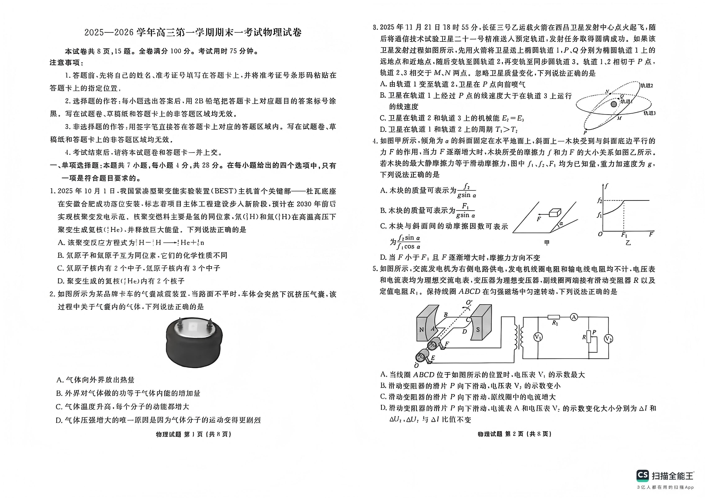 2025—2026学年高三第一学期期末一考试 物理.pdf