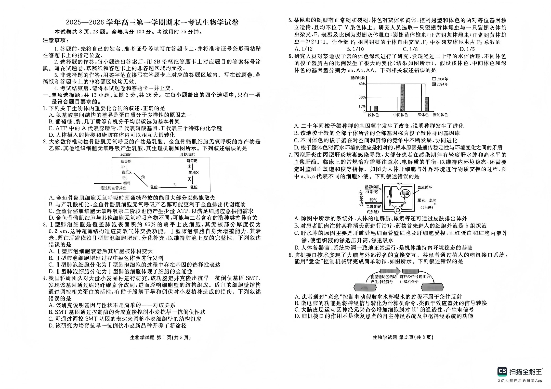 2025—2026学年高三第一学期期末一考试 生物.pdf
