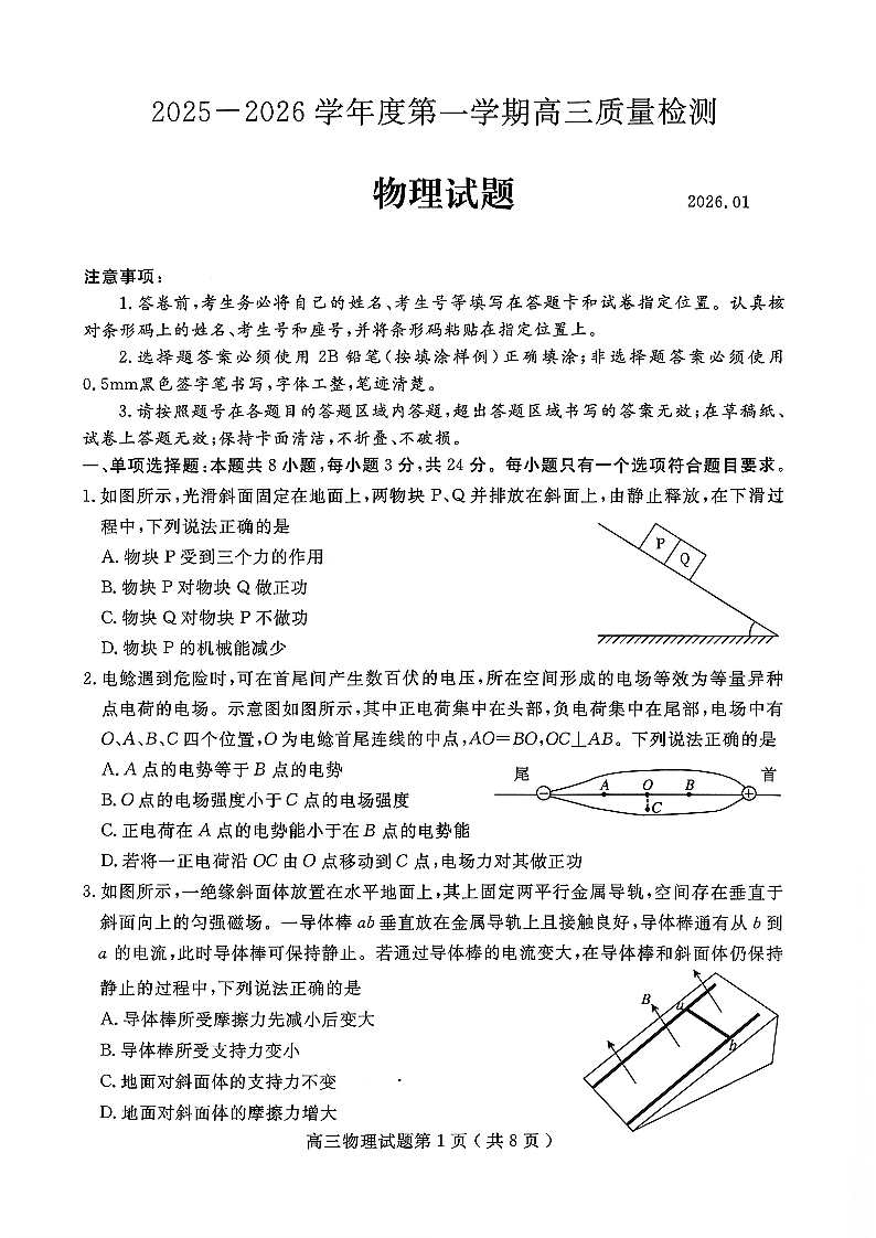 2025一2026学年度第一学期高三质量检测 物理试题(含答案).pdf