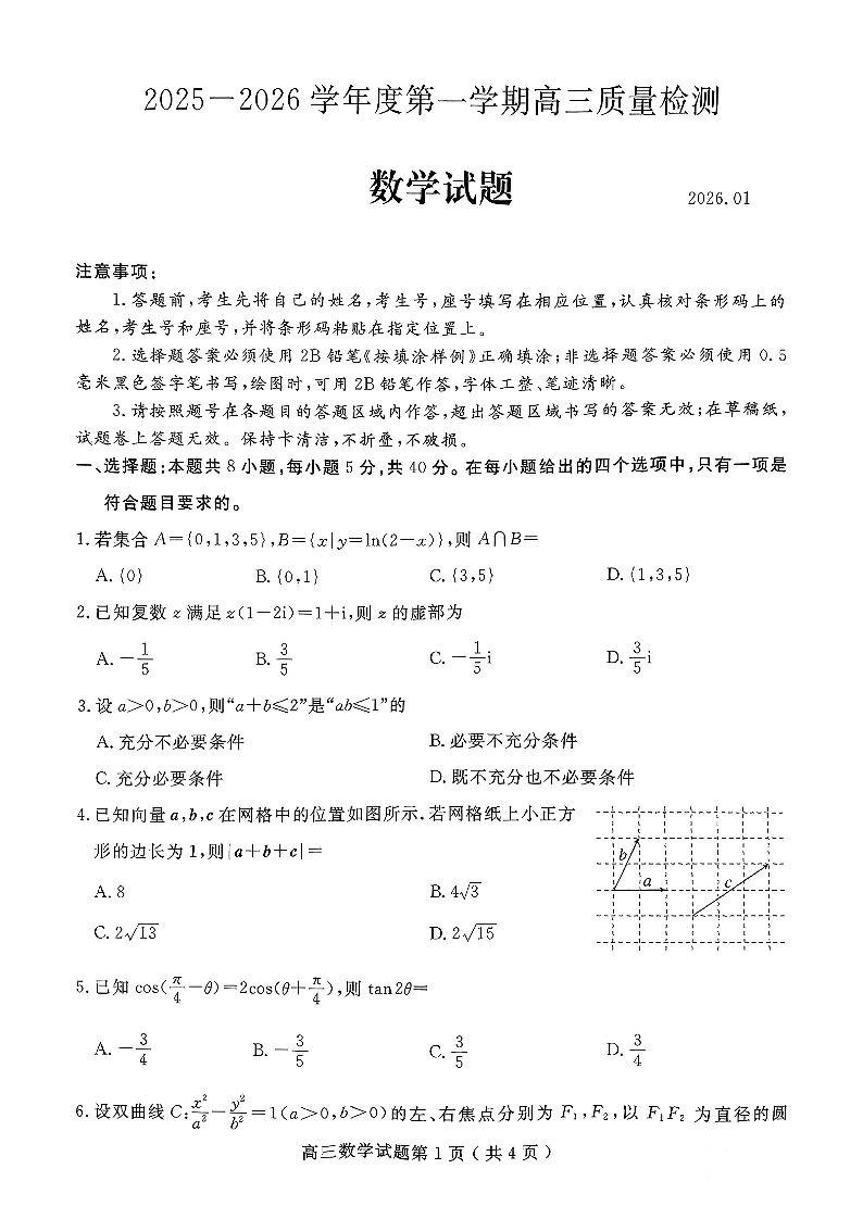 2025一2026学年度第一学期高三质量检测 数学试题(含答案).pdf