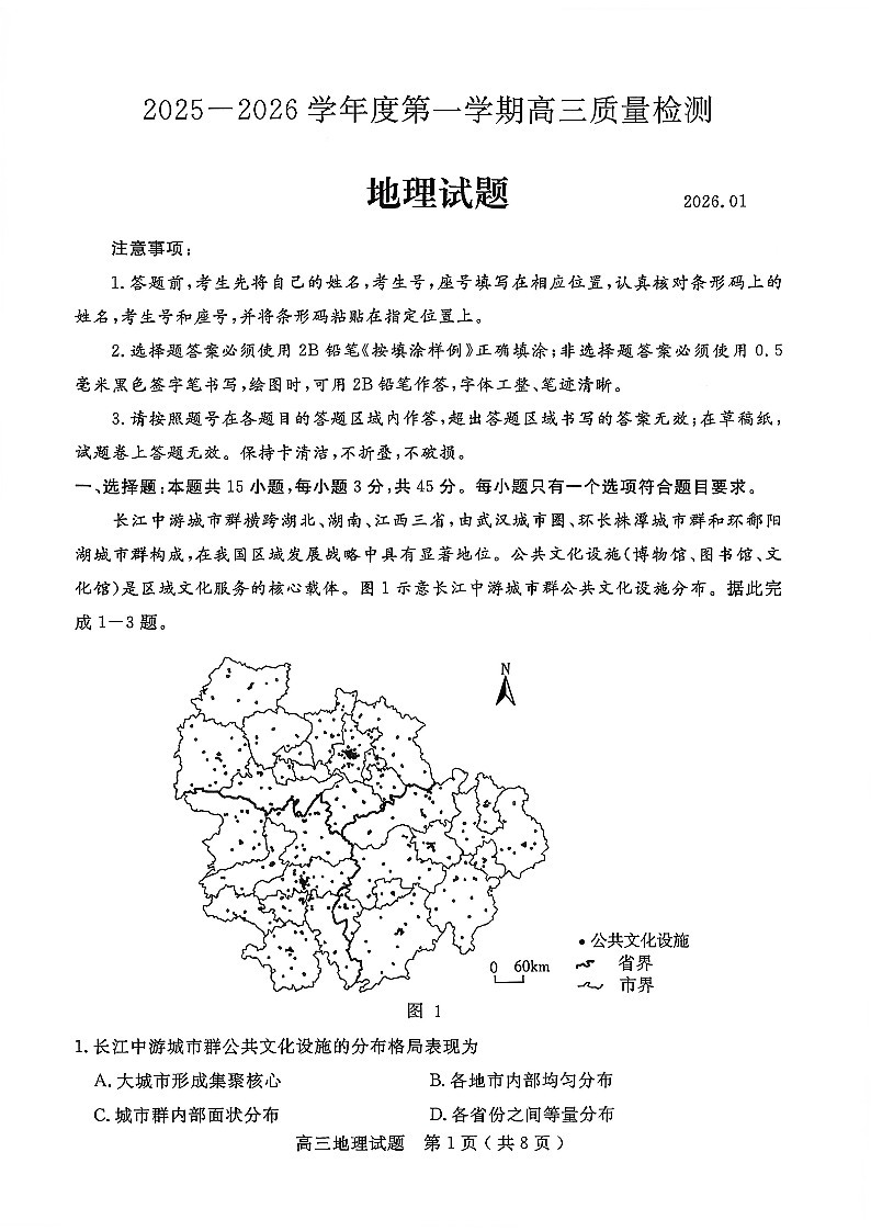 2025一2026学年度第一学期高三质量检测 地理试题(含答案).pdf