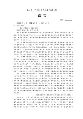 长沙市一中2026届高三月考试卷(五)语文.pdf