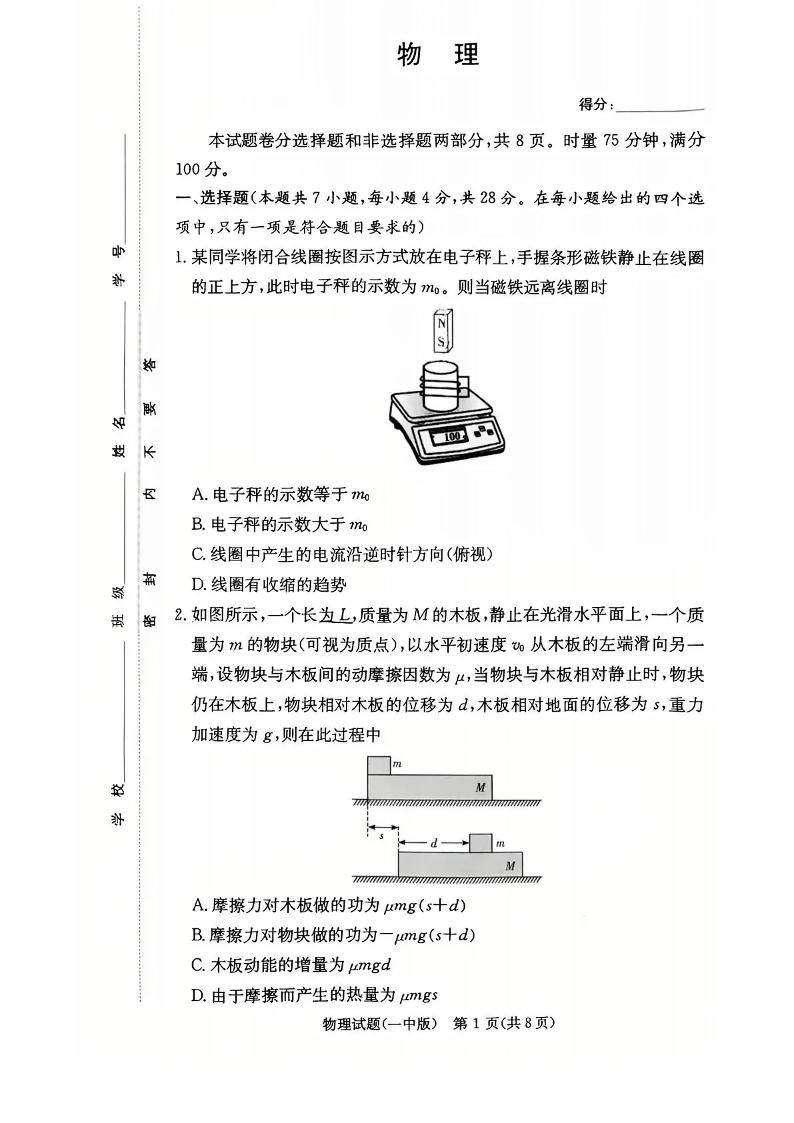 长沙市一中2026届高三月考试卷(五)物理.pdf