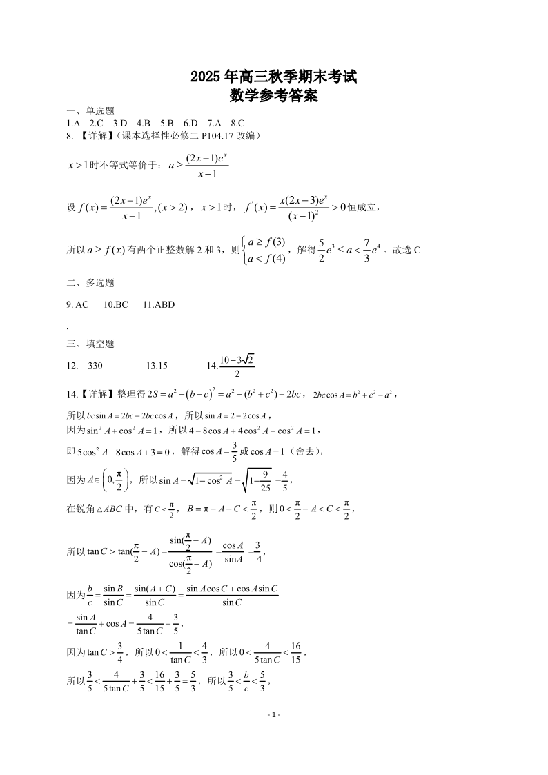 黄冈市2025年秋季高三年级1月期末考试 数学答案.pdf
