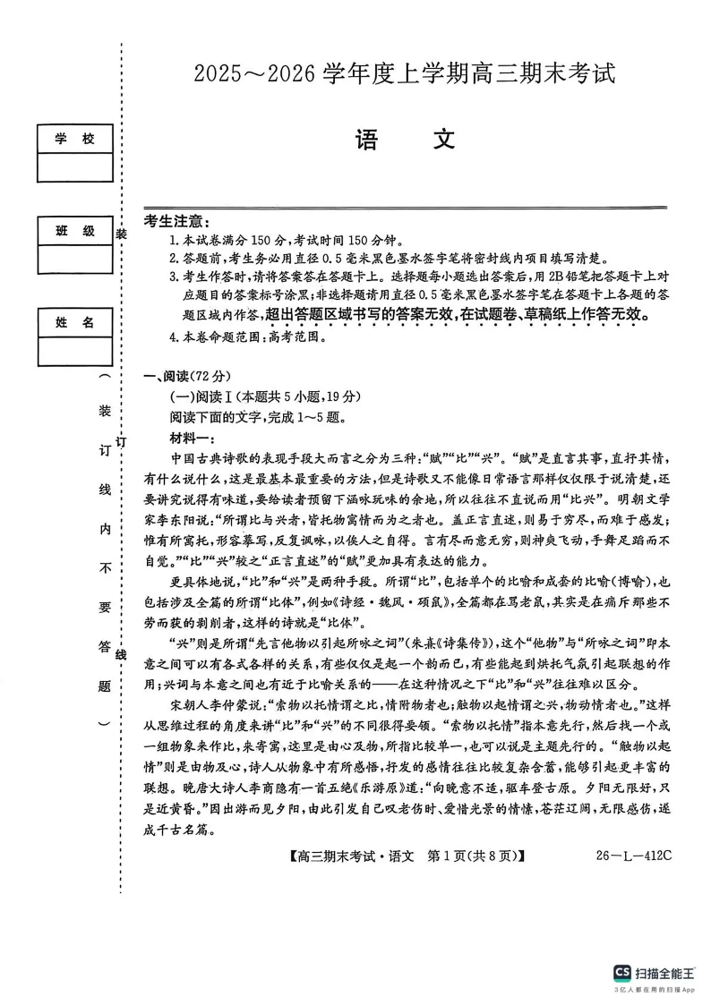 齐齐哈尔市2025~2026学年度上学期高三期末考试 语文.pdf
