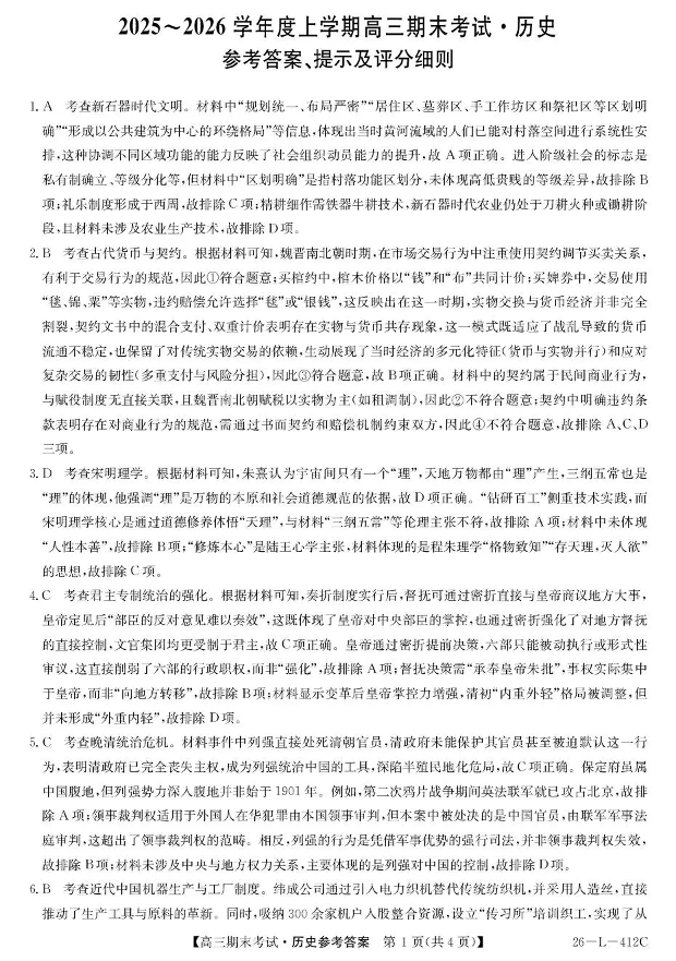 齐齐哈尔市2025~2026学年度上学期高三期末考试 历史答案.pdf