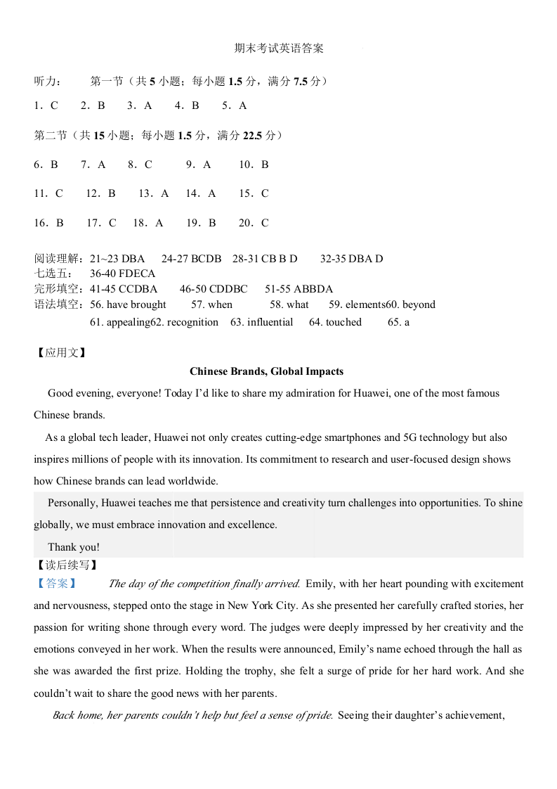 哈尔滨市第六中学2026届高三上学期期末测试 英语答案.docx