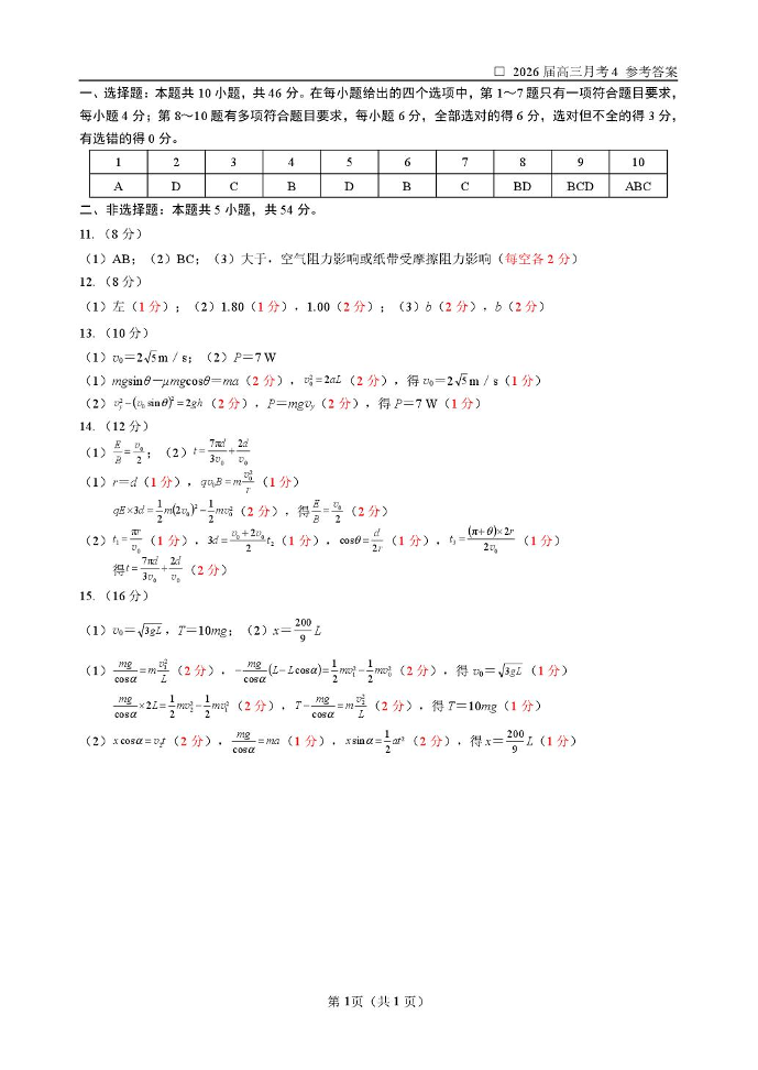 哈尔滨市第六中学2026届高三上学期期末测试 物理答案.pdf